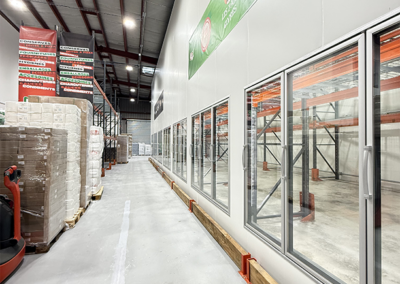 • Chambre froide négative (205 m² – 1 435 m3) avec portes vitrées libre-service